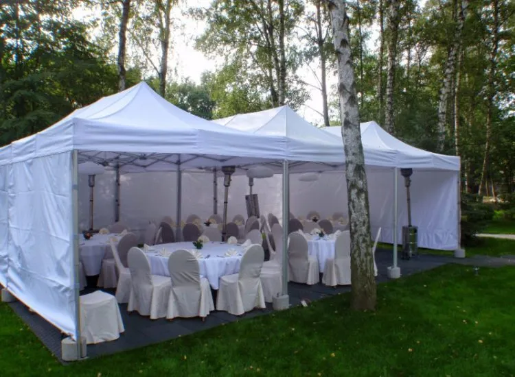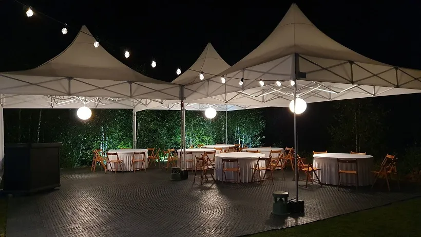 Nasza oferta to nie tylko wynajem namiotów Warszawa – dysponujemy również bardzo bogatym wyposażeniem uzupełniającym, takim jak podłoga namiotowa, stoły cateringowe, krzesła, stoły z ławkami i parasole grzewcze. Wynajem podłogi oraz innych akcesoriów obejmuje wyłącznie wyposażenie najwyższej jakości. Nasza usługa jest kompleksowa, a zatem nie kończy się na dostarczeniu namiotów pod wskazany adres – oferujemy również montaż, demontaż oraz wszystkie niezbędne prace instalacyjne, dzięki czemu klient może skupić się wyłącznie na kwestiach związanych z organizacją wydarzenia. Jesteśmy otwarci na szerokie spektrum oczekiwań klienta i dla ograniczenia kosztów transportu w przypadku eventów „w terenie”, dysponujemy też serią namiotów przeznaczoną do samodzielnego montażu / demontażu. Nasze namioty i elementy wyposażenia dodatkowego charakteryzują się wysoką estetyką i doskonałą jakością wykonania. Posiadamy sprzęt sprawdzonych, czołowych marek producenckich, co potwierdzone jest niezbędnymi certyfikatami na wodoodporność powłok namiotowych – z naszym wyposażeniem żadna pogoda nie przeszkodzi w wydarzeniu dziejącym się w plenerze. Utrzymanie czystości sprzętu jest dla nas priorytetowe przez cały okres jego eksploatacji, a zdobyte wieloletnie doświadczenie w tym aspekcie pozwalana utrzymać nam wysokie standardy konserwacji i bieżącej pielęgnacji namiotów, co zapewnia ich niezawodność w każdych warunkach atmosferycznych. Nasza wypożyczalnia namiotów to doskonała propozycja dla tych z Państwa, którzy szukają rozwiązań oryginalnych, ale równocześnie pewnych i sprawdzonych.