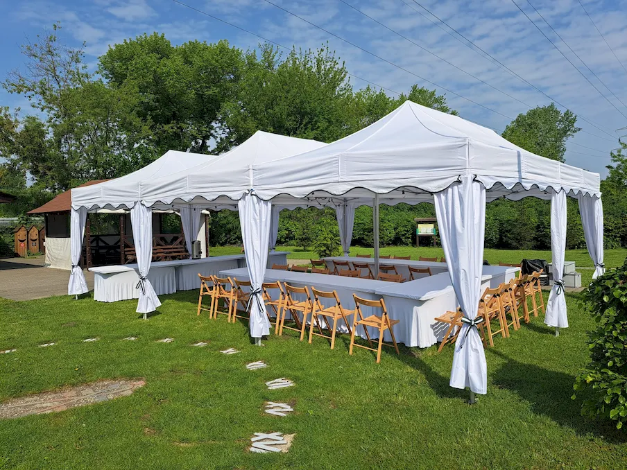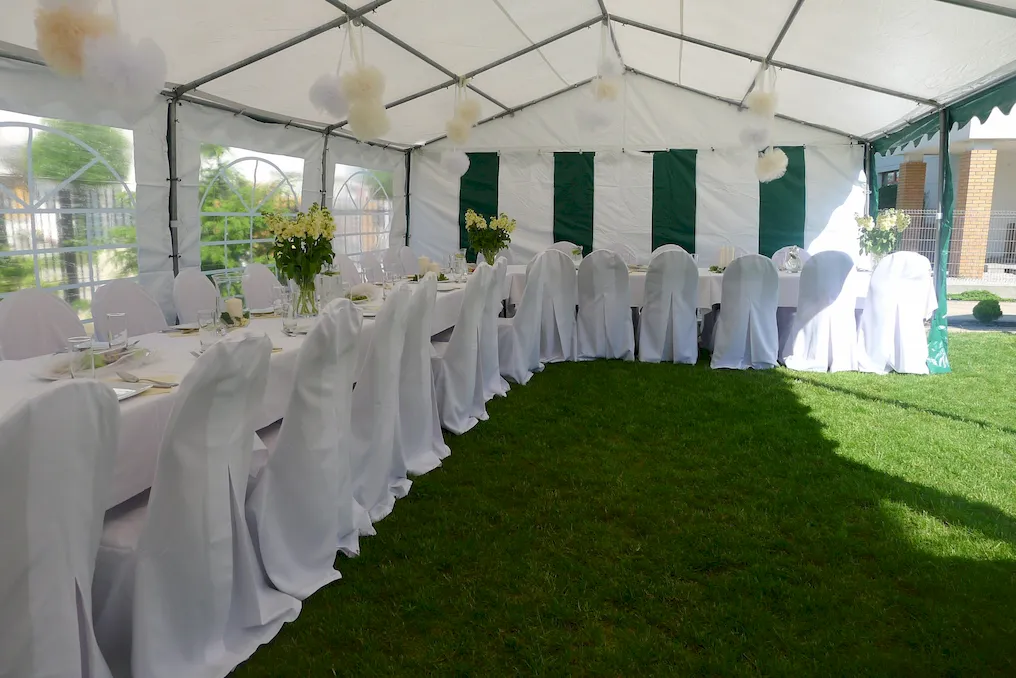 Nasze namioty i baldachimy sprawdzają się bez względu na pogodę – dbamy o to, aby każda uroczystość była naprawdę udana!