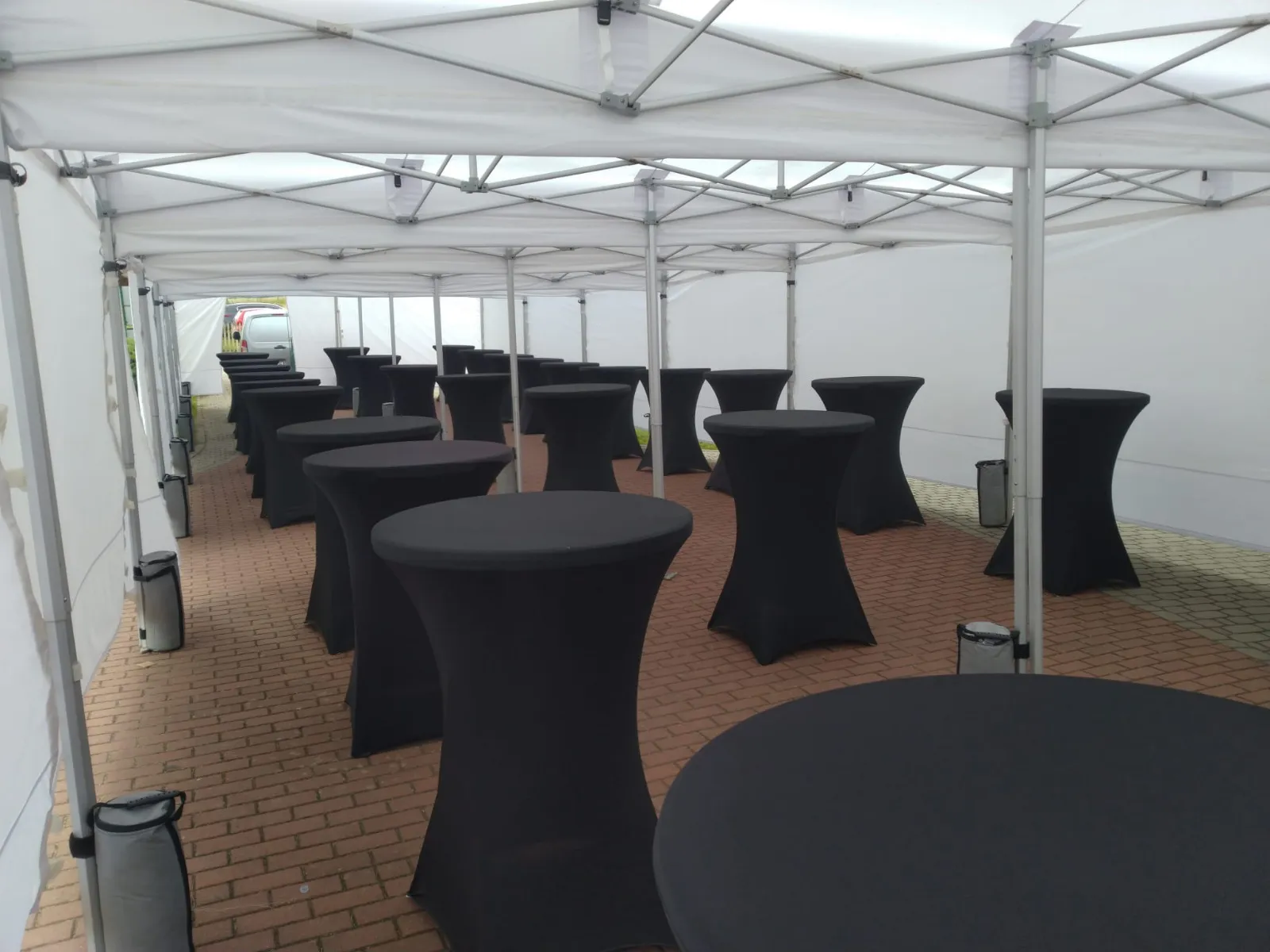 Obrusy elastyczne na stoły koktajlowe Oferujemy wynajem obrusów elastycznych. Obrus elastyczny na stół koktajlowy okrągły o wymiarach blatu 80 cm. Kolor:a) czarnyb) białyWygląda zawsze stylowo i nie gniecie się.